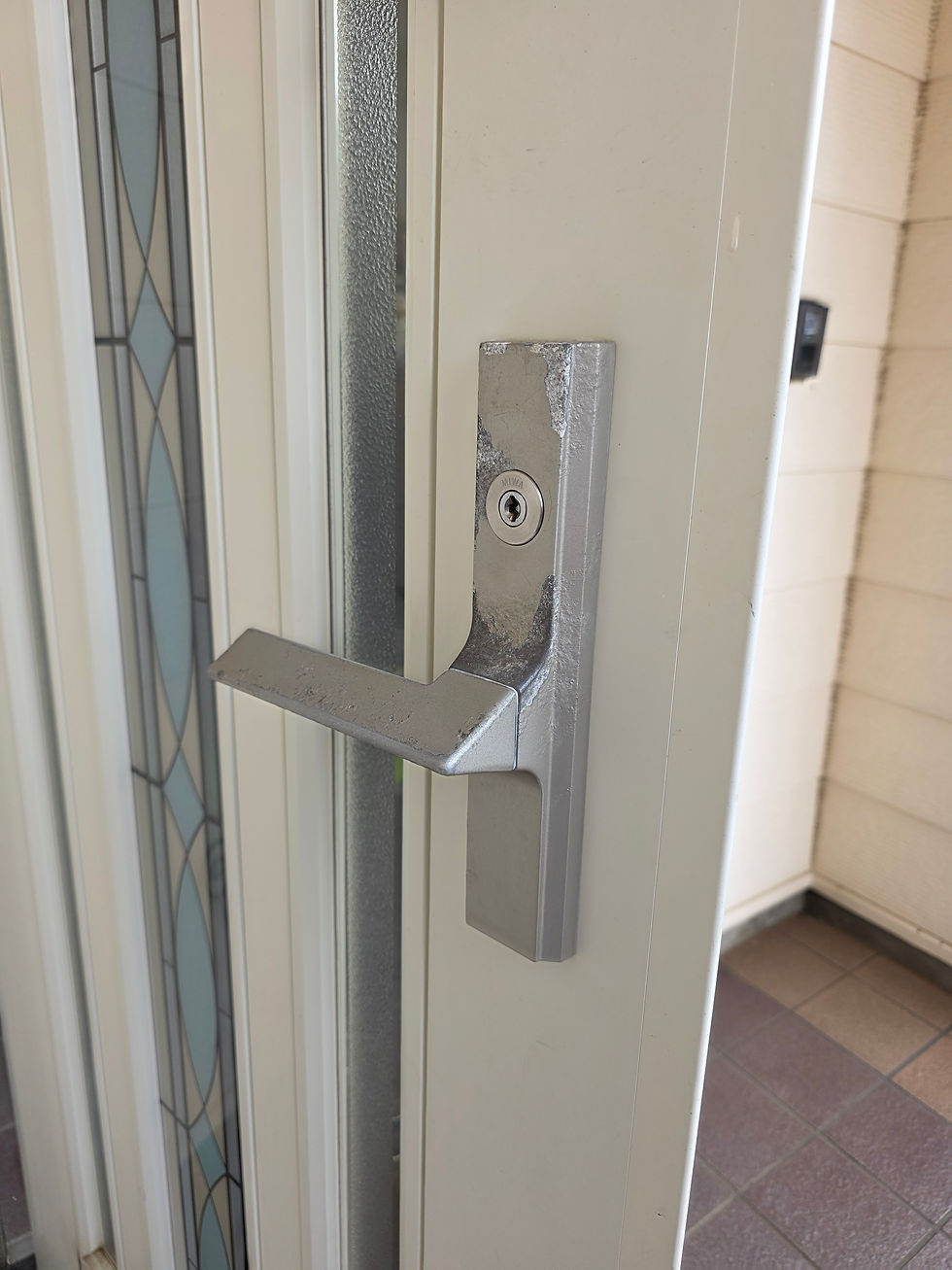 お客様は当初、電子錠による自動施錠を希望されていましたが、最終的に既存錠前の一式交換になりました。部品入荷後、再度訪問して来ました🚙💨